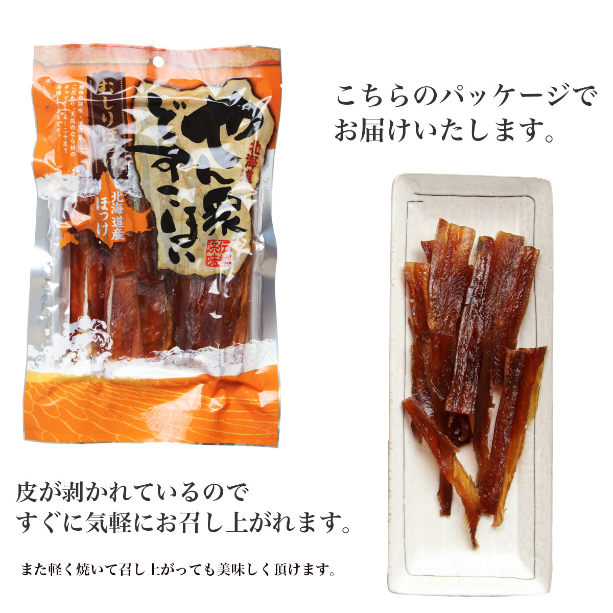 送料無料 北海道産 ほっけ 燻製 70g ホッケ ほっけ 珍味 おつまみ ほっけ 燻製 65g 北海道産 珍味 お試し 酒 つまみ 常温 北海道 お取り寄せ グルメ 真ほっけ 特産品 海産物 北海道産 ほっけ燻製 美味しいもの 家飲み ご当地グルメ 送料無料 (n-h-001) 商品詳細 商品名むしりホッケの燻製 内容量65g 原材料ほっけ(北海道産)、砂糖混合ぶどう、糖果糖液糖、食塩、醤油、米発酵調味料、植物油、しょうが/調味料(アミノ酸等)カラメル色素、甘味料(甘草)、酸味料、(一部に小麦・大豆を含む) 賞味期限製造日から90日 保存方法直射日光、高温多湿を避け常温で保存 製造者(株)ヤマニ野口水産 宅配便に変更で配送早め&ギフト対応可 選択してください このまま送料無料 +650円で宅配便に変更 沖縄・離島の場合、送料+650円(宅配便) 了承して注文する 宅配便へ変更の場合、送料は別途ご連絡いたします 了承して注文する ご自宅のポストへ投函されます 了承して注文する お届け先が違う場合は予め相手方にご連絡をお願いいたします 了承して注文する 複数注文の場合は、発送方法についてご相談する場合があります 了承して注文する 再配達の場合は別途送料が発送します 了承して注文する ギフト対応ご希望の際はご注文の際、備考欄にご入力ください 了承して注文する 在庫状態 : 在庫有り ¥900(税込) 数量