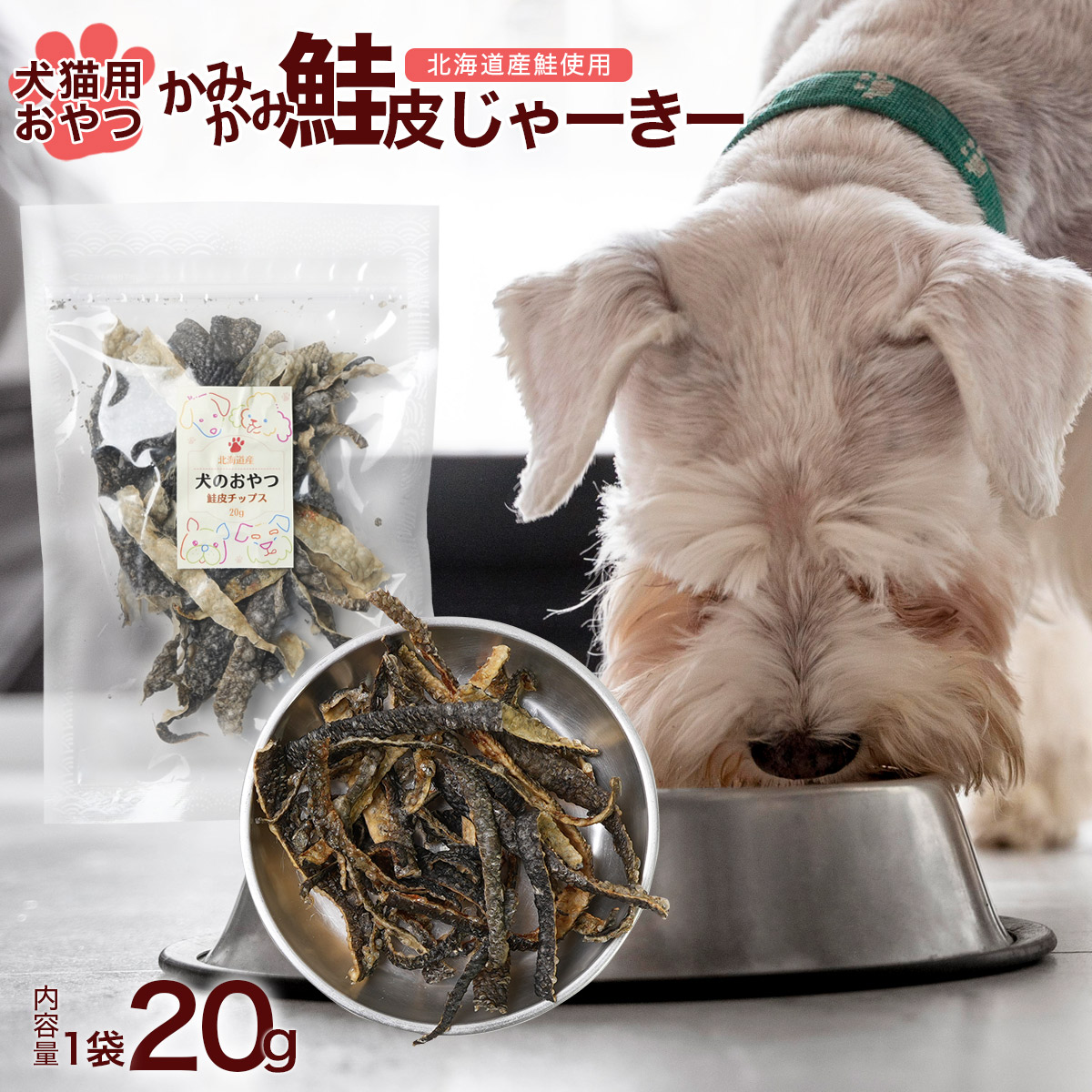 ペットフード かみかみ 鮭皮 じゃーきー 20g 犬 猫 北海道産 わんちゃん ねこちゃん 国産原料 ヒューマングレード 安心安全 ドッグフード キャットフード おやつ ポイント消化